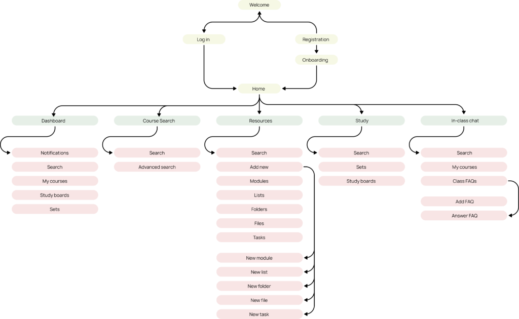 To bring even more clarity and order to my design, I mapped out the hierarchy of content and features.