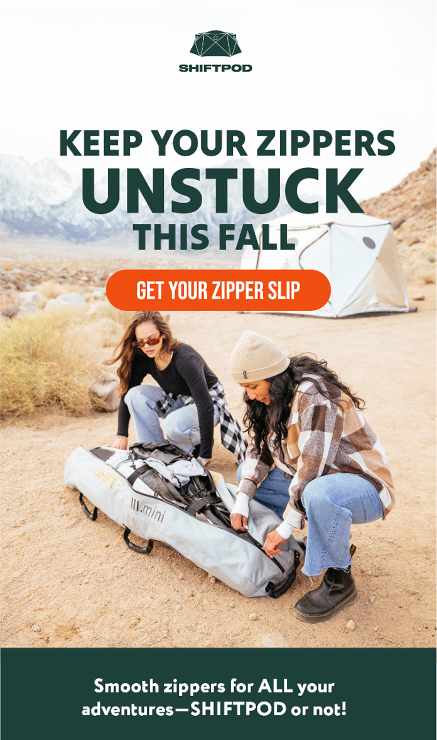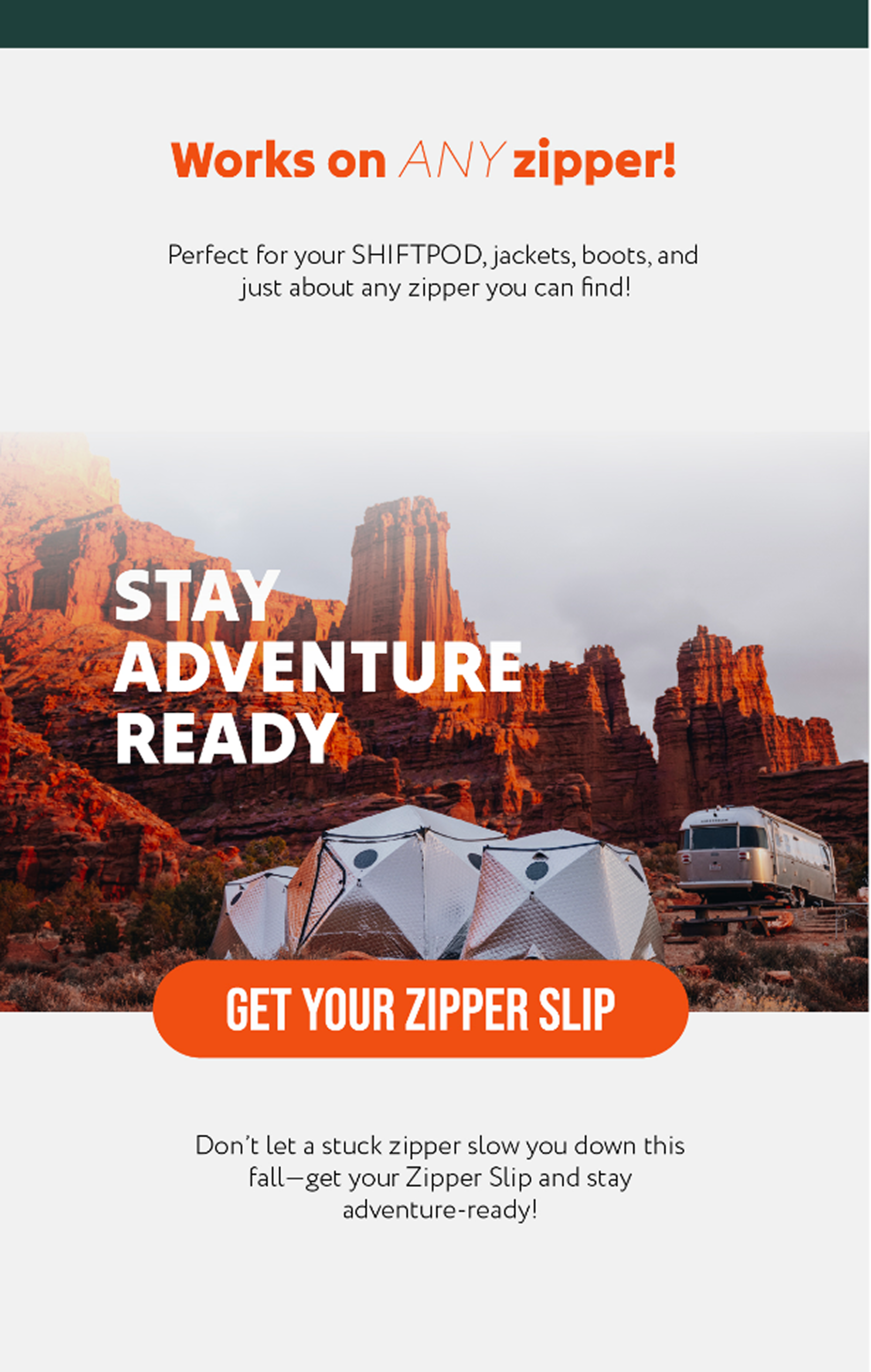 A promotional email for Shiftpod highlighting their accessory product, Zipper Slip.