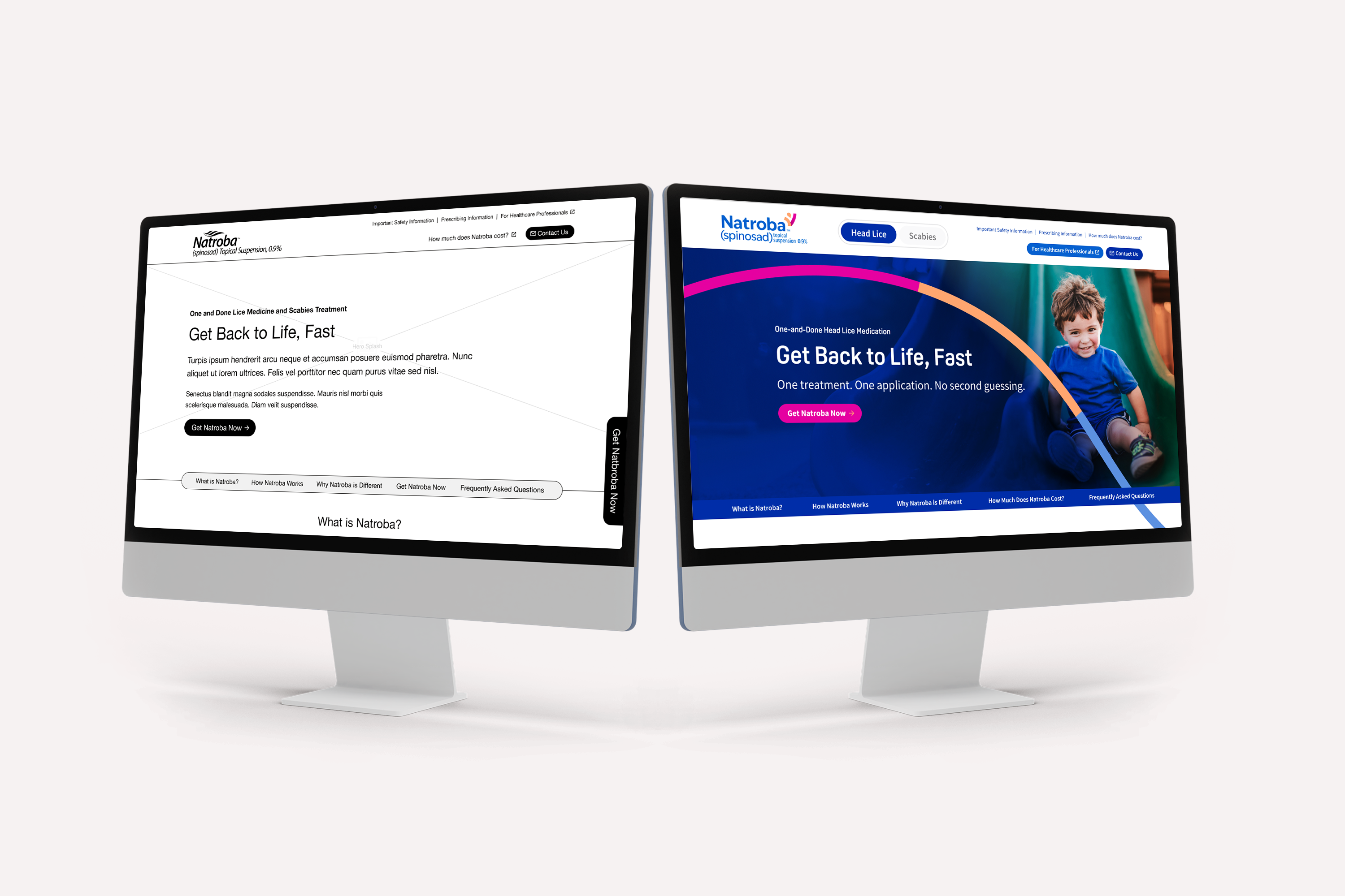 Natroba treats both scabies and lice; two conditions with distinct user needs and intent. Early in the experience, this information was presented together, making it difficult for users to quickly find what was relevant to them.
